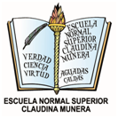 Ideado por las Hermanas Fede Canale y Maurizzia Messi M.C., está compuesto por un libro abierto y una llama. En el ala derecha puede apreciarse una pluma en la parte superior, debajo grabadas las palabras Verdad, Ciencia y Virtud. En el ala izquierda puede leerse: Escuela Normal Superior “Claudina Múnera” Aguadas, Caldas. La pluma y el libro simbolizan la ciencia, conocimientos metódicos y razonados que se adquieren a través del estudio y el deseo de superación constante. La llama es el emblema de la sabiduría. El lema Verdad, Ciencia y Virtud sintetiza la filosofía institucional.